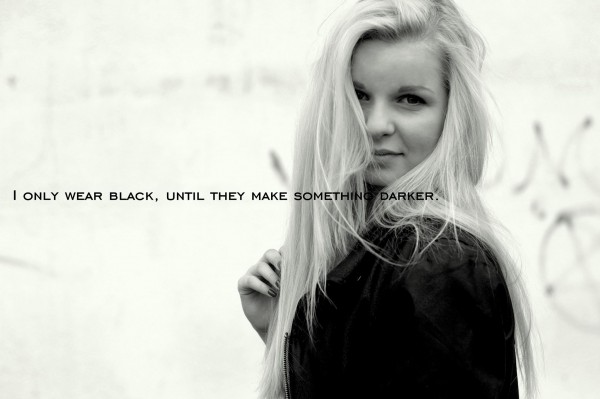 Vždy k čiernemu outfitu treba doplniť niečo, nejaký doplnok alebo časť oblečenia, ktorý bude dominovať.